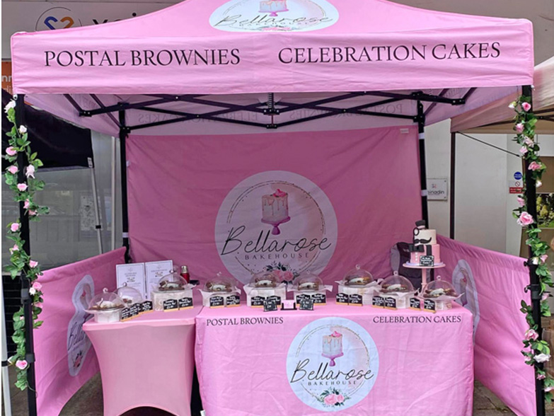 At Instant Promotion, it’s always a pleasure to see our gazebos in action, and Bellarose Bakehouse’s stunning setup is no exception! Their 3m x 3m Trader Package, showcased at a bustling local market, perfectly complements their delicious selection of cakes and brownies.