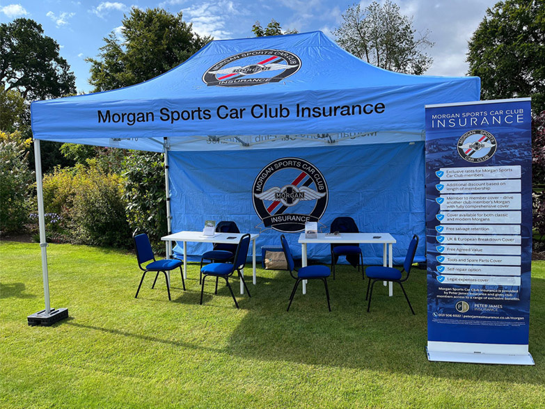 At Instant Promotion, we’re proud to support businesses like Peter James Insurance, helping them enhance their event presence and connect with their audience in meaningful ways. Whether it's showcasing their classic car insurance offerings or building relationships with club partners, the branded gazebos provide a professional and polished platform.