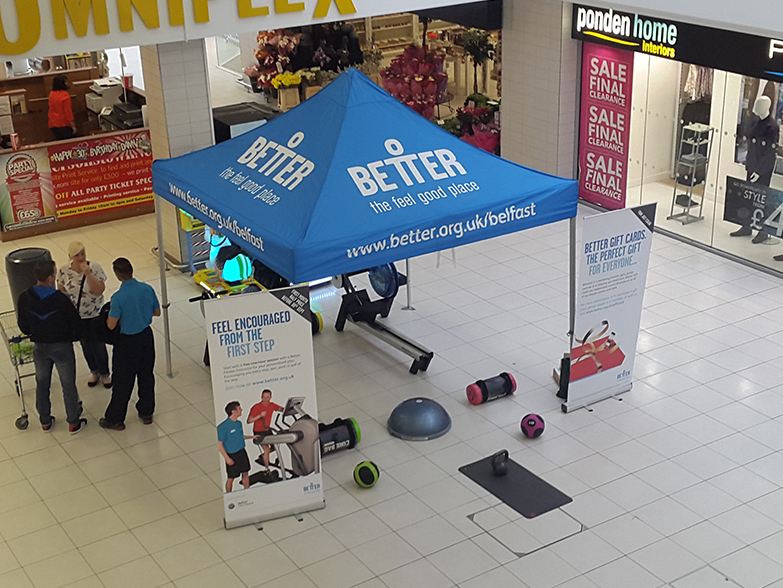 We have enjoyed a close working relationship with GLL for many years producing branded Instant Awnings, advertising flags, pop up counters, table covers and PVC banners for their fitness and leisure centres nationwide.