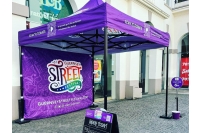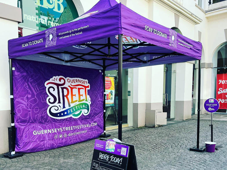 Back for its second year running, the Guernsey Street Festival is an annual festival celebrating all forms of street performance. The 2022 festival was made up of different performance zones and Instant Promotion supplied gazebos of various bright colours as the focal point of each zone, as well as acting as a stage for the performers. GSF chose a mix of 3x3m and 2.5x2.5m awnings, each with printed walls that could be easily added or removed to suit the weather and location.