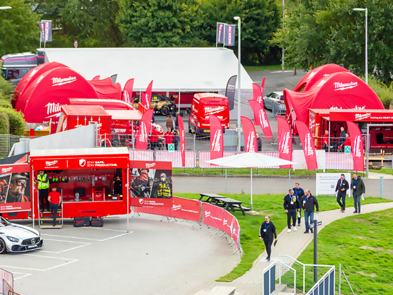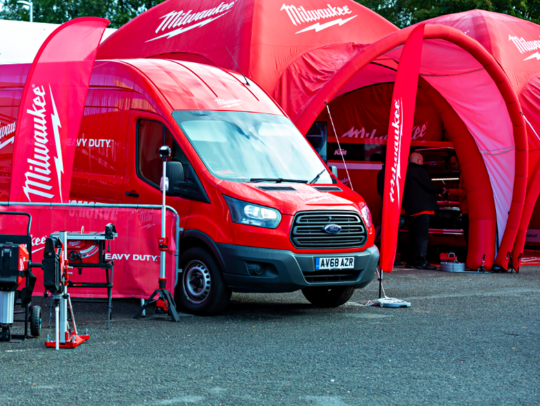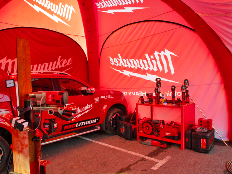 Thanks to Milwaukee for these amazing photos from their 2022 Annual Conference and Product Launches. Multiple 6x6m X1 Spider Domes were ordered, complete with connecting tunnels, awning extensions and single / double sided wall combinations. All domes were dye sublimation pantone matched print, adhering to strict brand guidelines. All domes were inflated in minutes and the complete set up was achieved in well under an hour. As well as looking great, the domes provided valuable shelter for trade vehicles and tools during the day and night.