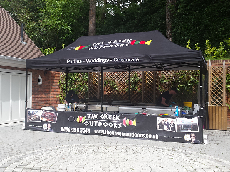 Since 2015 The Greek Outdoors have continued to grow, having built a competitive franchise package and Instant Promotion will support them every step of the way with branded gazebos of various sizes to suit their event needs.
