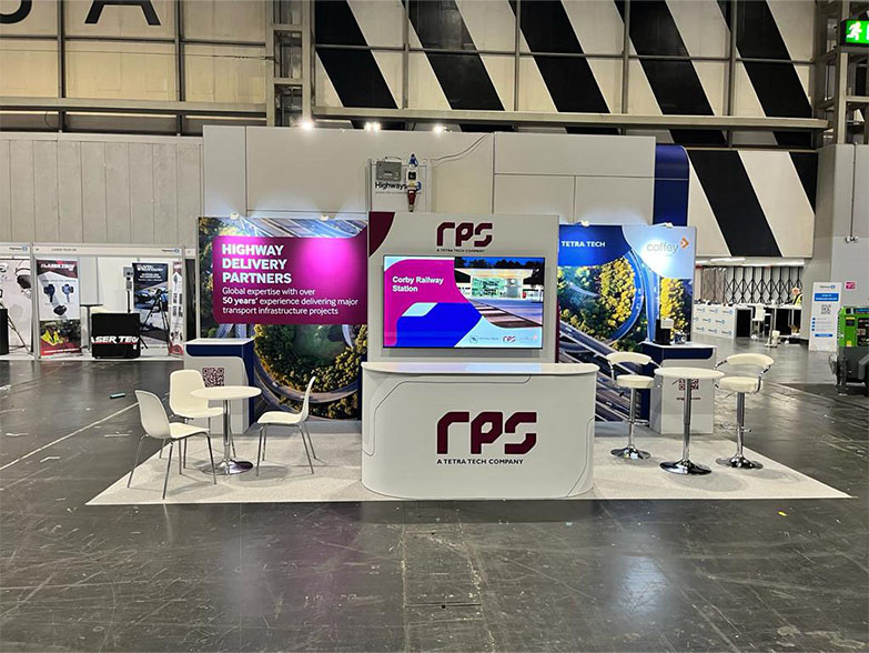 RPS, a leading infrastructure solutions provider, aimed to maximise its presence and engagement at the Highways UK exhibition hosted at the NEC Birmingham. With a commitment to showcasing innovation and fostering meaningful connections, RPS opted for a bespoke exhibition stand that not only reflected its brand identity but also facilitated interactions with attendees.