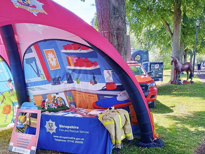 Shropshire Fire & Rescue Service now proudly owns both a 4x4m and a 6x6m Inflatable Spider Dome, which they regularly take to community events across the region. These domes serve as a dynamic hub where the public can learn about fire and water safety in an inviting and engaging environment.