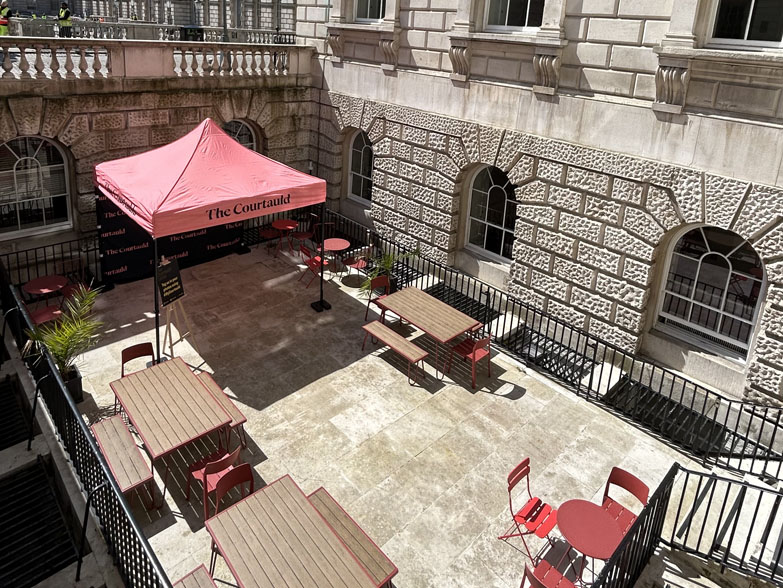 We want to send a big thanks to The Courtauld for sending us these fantastic photos of their 3x3m gazebo looking very stylish in the sunshine! Their set up features our strongest frame, the GZBO Hex50, in black and a back wall for added impact.