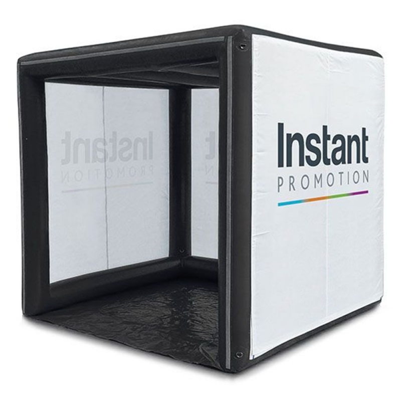 The Impact Cube provides a simple, attention grabbing solution at every event! The design features a built in roof and floor, heavy duty PVC tarpaulin framework and safety valve technology to help avoid over inflation. Four fully branded walls can be attached at any one time and they can be interchanged within seconds. From bag to full set up takes less than 5 minutes. For further information on material options, templates and product specifications, please review the tabs below.
